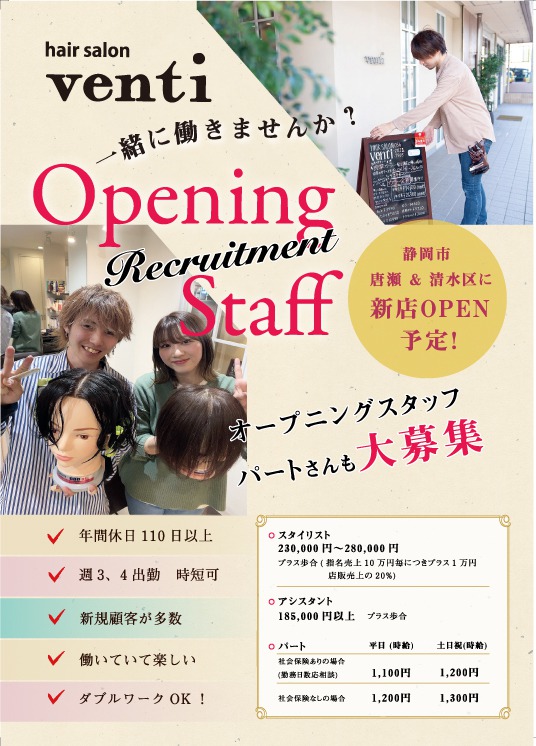 Hair Salon ventiの求人広告チラシを制作させていただきました。